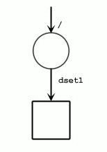 Note: In the figure above are two figures. The top figure represents a newly created file with one group, /. In the bottom figure, a dataset called /dset1 has been created.