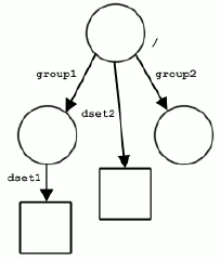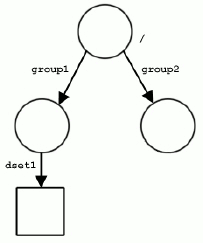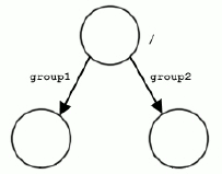 Note: The figure above shows three groups; /group1 and /group2 are members of the root group.