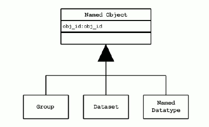 There are three classes of named objects: group, dataset, and committed (named) datatype. See the figure below. Each of these objects is the member of at least one group, and this means there is at least one link to it.
