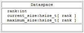 The HDF5 dataspace describes the layout of the elements of a multidimensional array. Conceptually, the array is a hyper-rectangle with one to 32 dimensions. HDF5 dataspaces can be extendable. Therefore, each dimension has a current size and a maximum size, and the maximum may be unlimited. The dataspace describes this hyper-rectangle: it is a list of dimensions with the current and maximum (or unlimited) sizes. See the figure below.