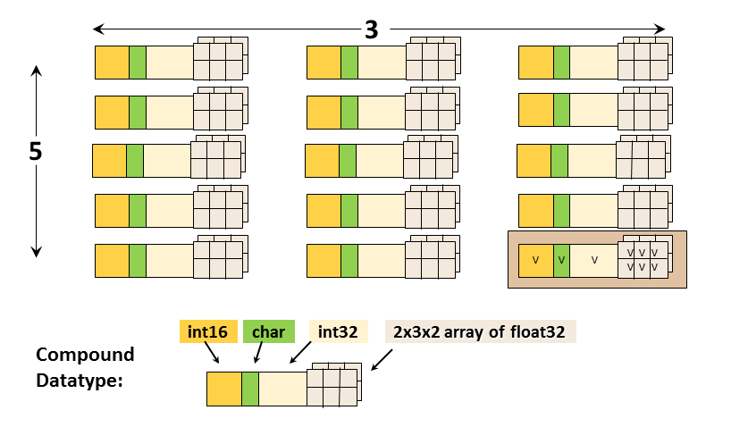 Datatypes, dataspaces, properties and (optional) attributes are HDF5 objects that describe a dataset. The datatype describes the individual data elements.