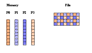 This is another example of writing data into disconnected locations in a file. Each process writes data from the contiguous buffer into regularly scattered locations in the file.