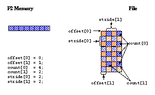For example, the offset, count, and stride parameters for Process 2 would look like: