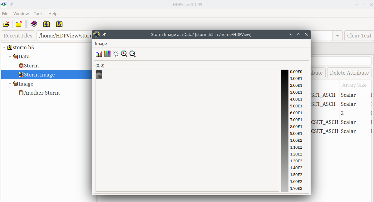 A previous topic demonstrated how to view any dataset as an image in HDFView. With HDFView you can also create an image to begin with, as is shown below.