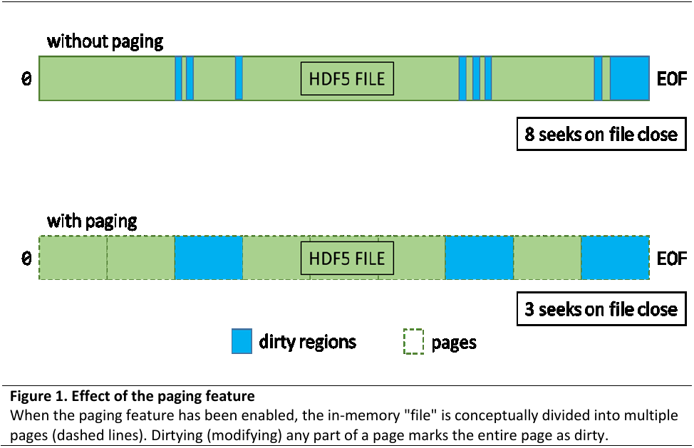 The Core virtual file driver allows the manipulating of HDF5 files in memory instead of in physical storage. In previous versions, changing any part of a file in memory meant the entire file would be written to storage on file close or flush. To improve the performance of the writing to storage operation, a new feature, modified region writes, has been added. With modified region writes, only the changed regions of the file are written to storage.